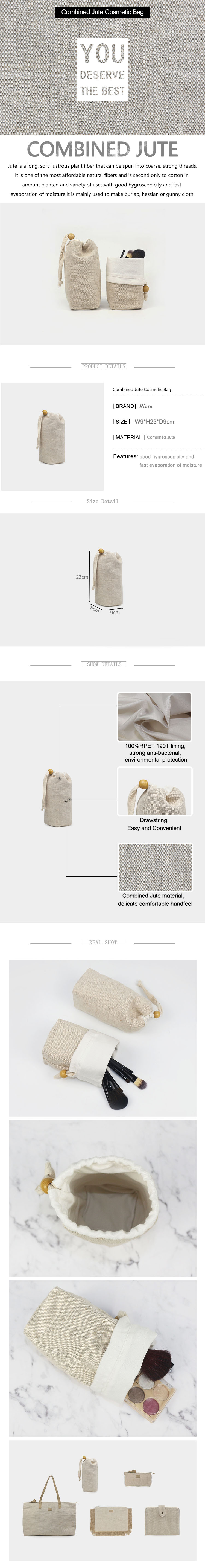 This makeup brush bag is made of Bamboo Fiber Jute, which hold your essential cosmetics tools so you can get ready in style.