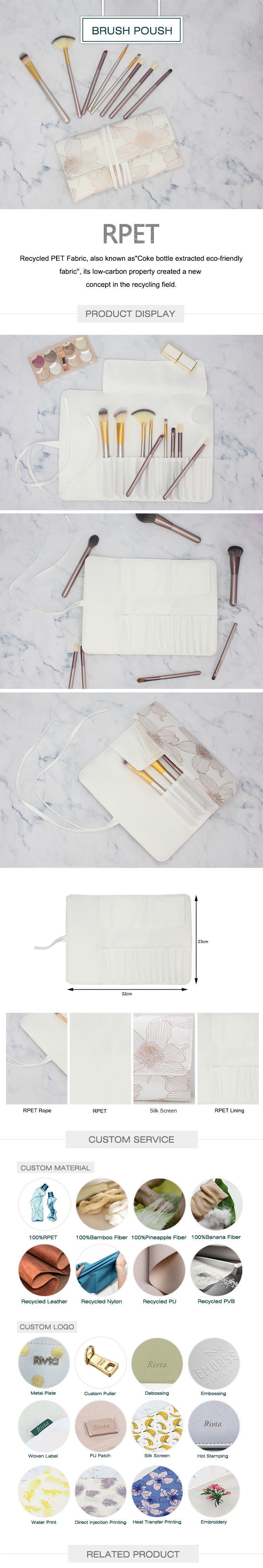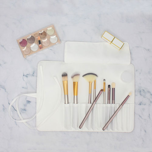 This makeup brush bag is made of Recycled PET, which hold your essential cosmetics tools so you can get ready in style.