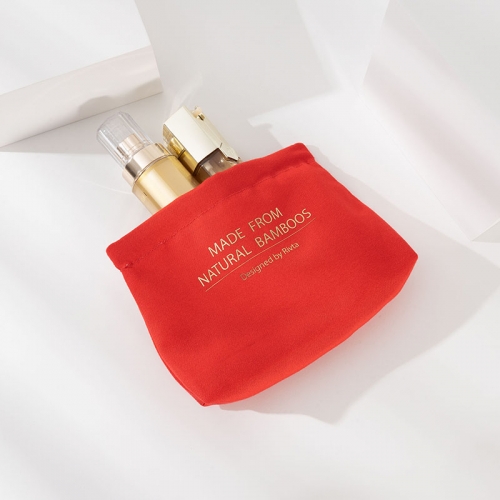 Showing our make-up bag made of bamboo fiber, suitable for travels and every day. This tiny bag is easy to fit your full face daily makeup: compacts, lipsticks, nail polish, and more.
