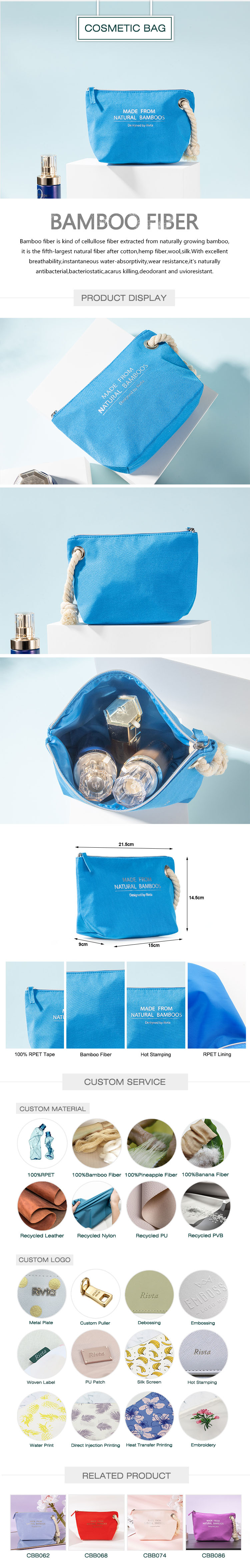Hardware: Nylon Zipper (Silver), Bamboo Fiber Puller (Blue)