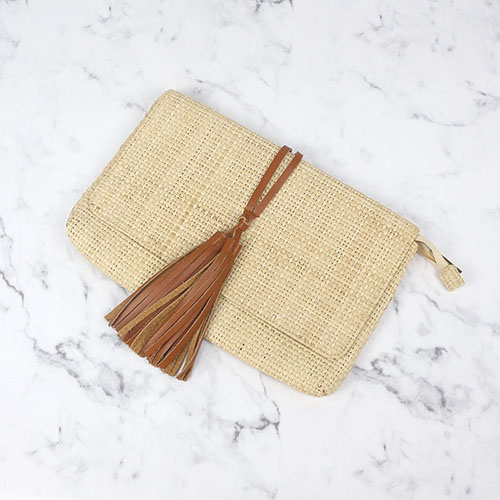 Take your everyday essentials with you anywhere you go with this statement clutch made of Raffia.