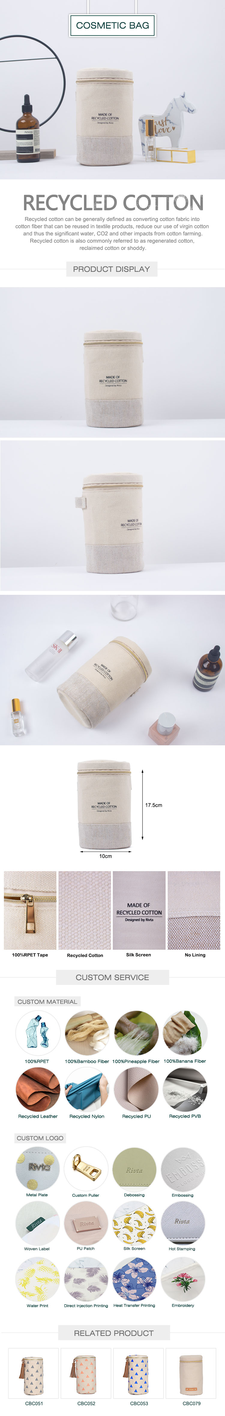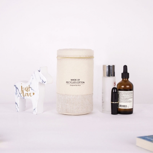 Recycled cotton combined with linen cosmetic bag for your daily beauty must-have that will very convenient for you to carry anywhere.