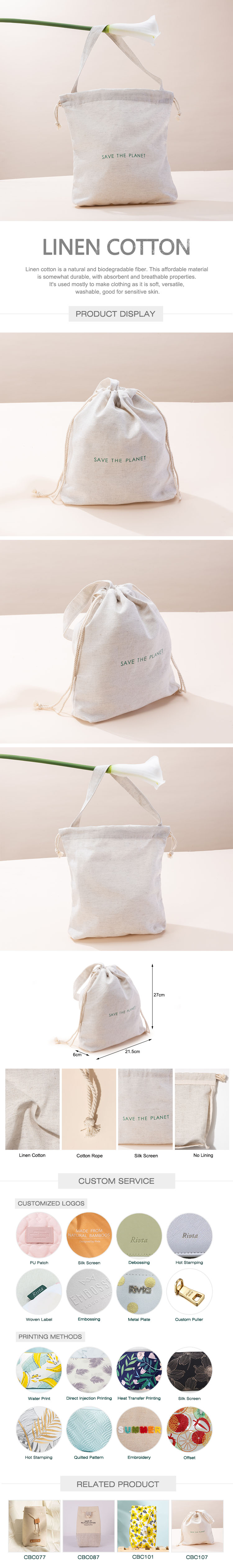 Travel Beauty Drawstring Bag Linen Cotton - CBC110