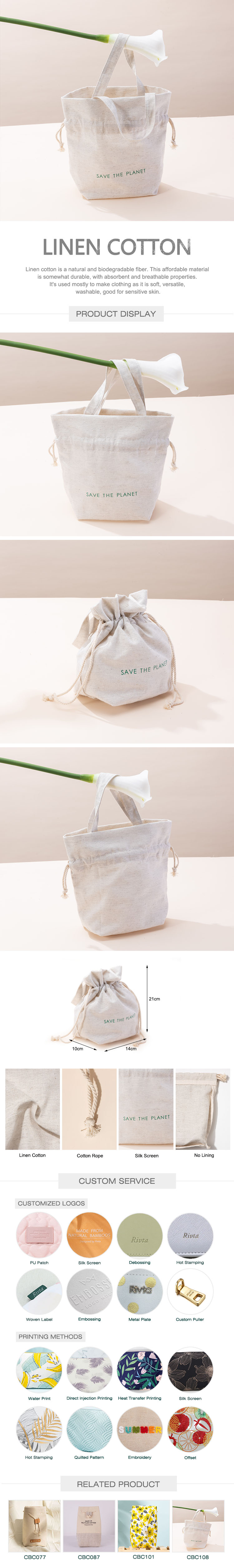 Waterproof Beauty Drawstring Bag Linen Cotton - CBC111