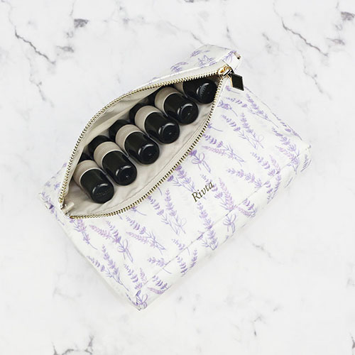 Luxury Recycled PET essencial oil bag for on-the-go cosmetics organizing.