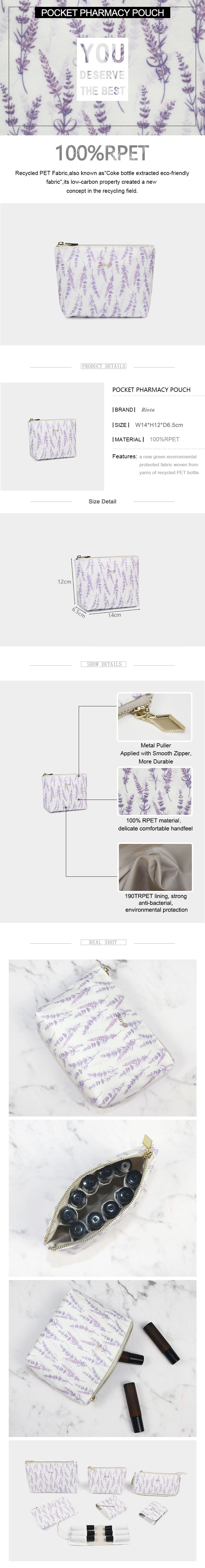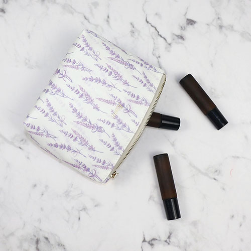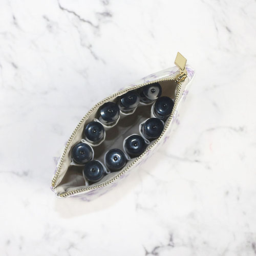 Luxury Recycled PET essencial oil bag for on-the-go cosmetics organizing.