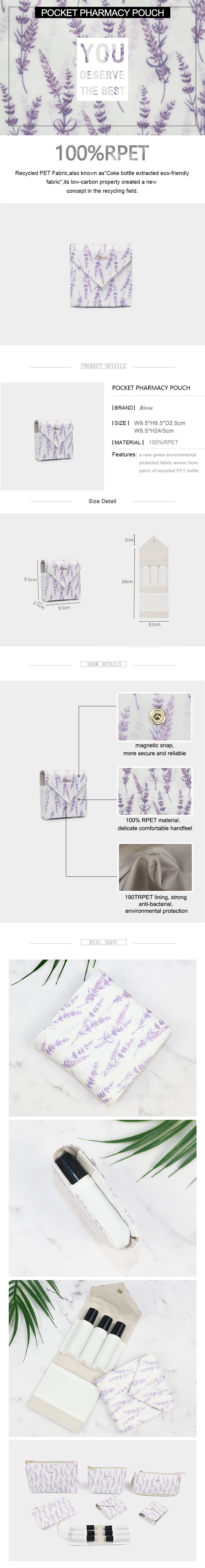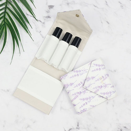 Luxury Recycled PET essencial oil bag for on-the-go cosmetics organizing.