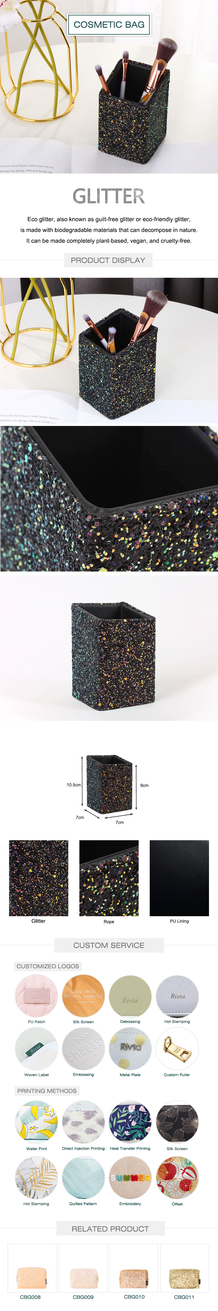 This brush holder is made of shiny glitter and PU. it’s pretty practical with perfect size7X7X9/10.5cm. You can fit all of your brushes into this organizer, and because they’re sitting upright, they’ll have time to dry.