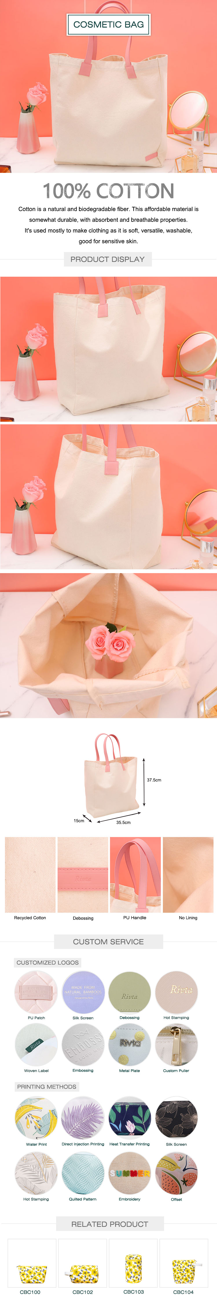 Made of recycled cotton, skin-friendly, good moisture absorption, it can hold your daily items and keep your stuff organized perfectly. It can be folded and compressed. It is very convenient to carry. A perfect gift for women and girls.