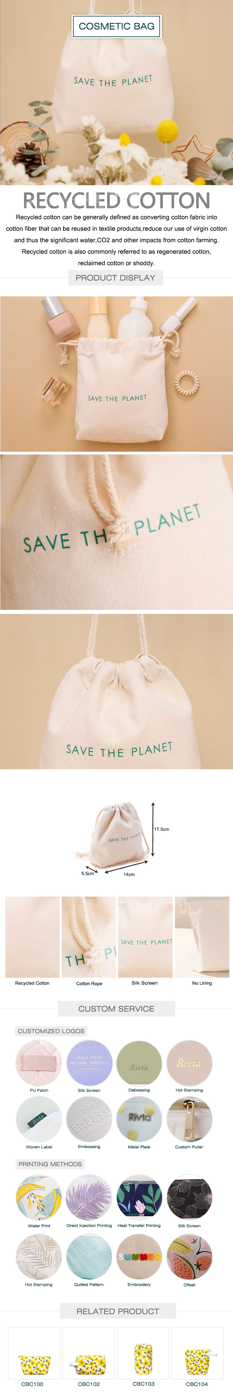 Small Beauty Drawstring Bag Recycled cotton - CBC109