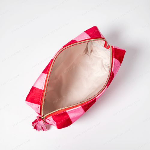 Crafted from recycled RPET velvet and designed with vibrant prints, this cosmetic bag combines eco-conscious materials with eye-catching aesthetics. Perfect for brands seeking customizable, sustainable packaging solutions from an experienced cosmetic bag manufacturer offering wholesale and bulk services.