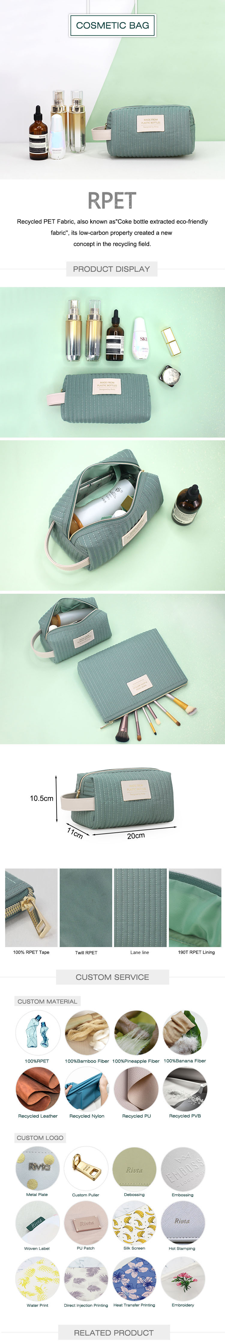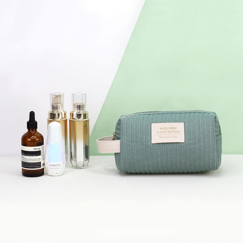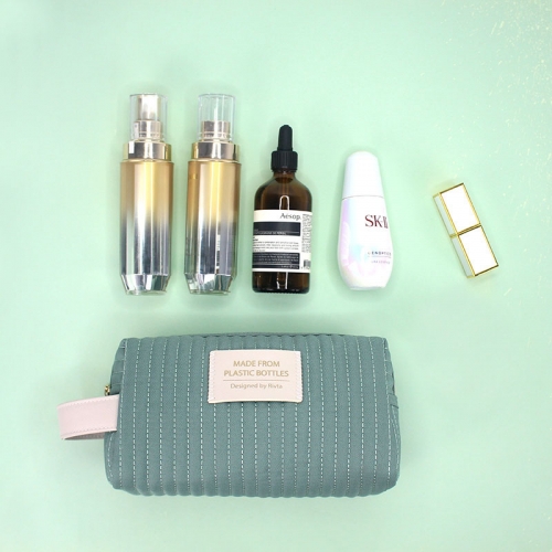 Our Recycled PET toiletry bag is generously sized to hold your cosmetics.