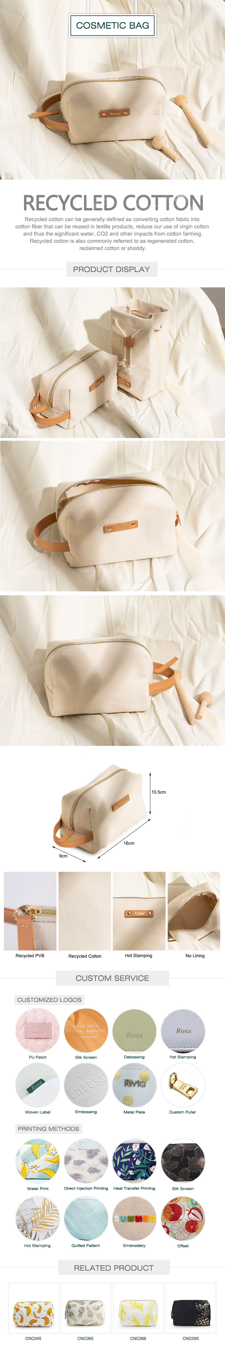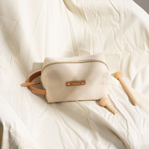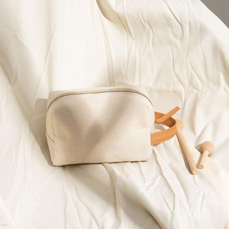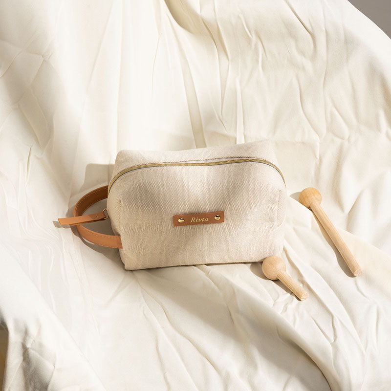 Our Recycled cotton toiletry bag is generously sized to hold your cosmetics.