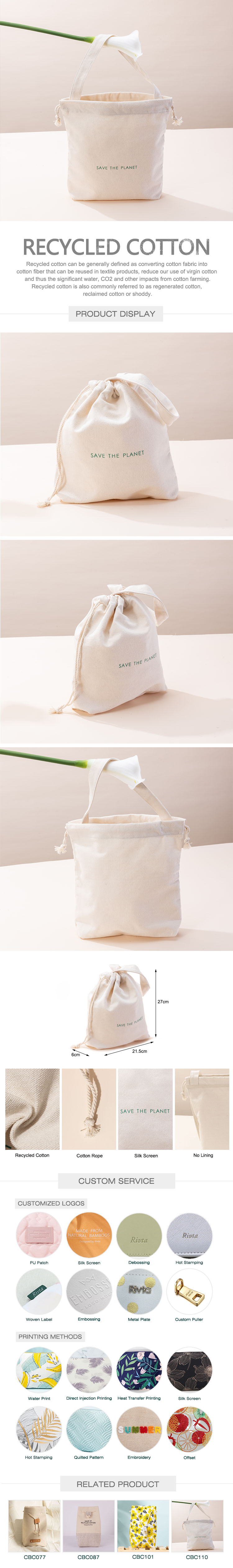 Travel Beauty Drawstring Bag Recycled cotton - CBC107